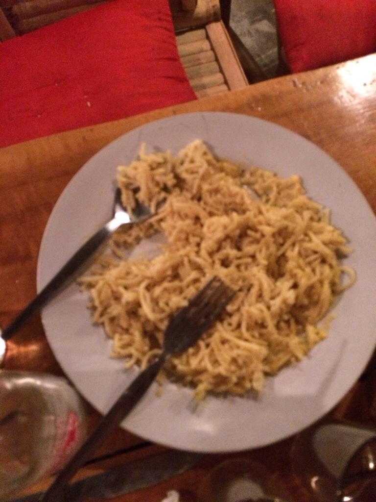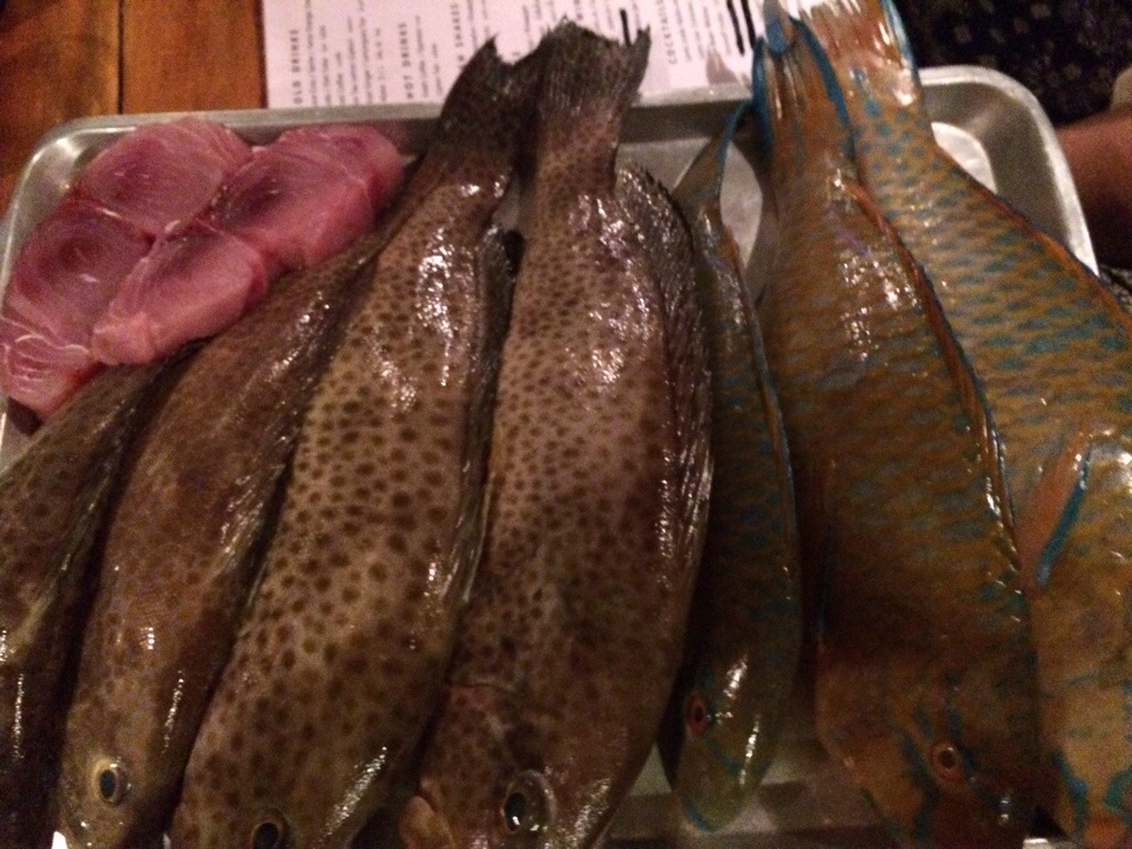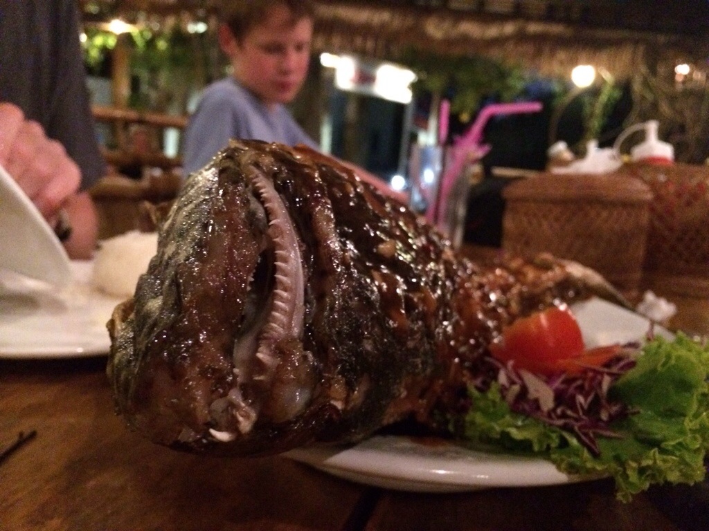 The photo of Max’s spaghetti carbonara (without ham – just cream) is for those of you who are squeamish about seeing a fish, or at least one with a face.
