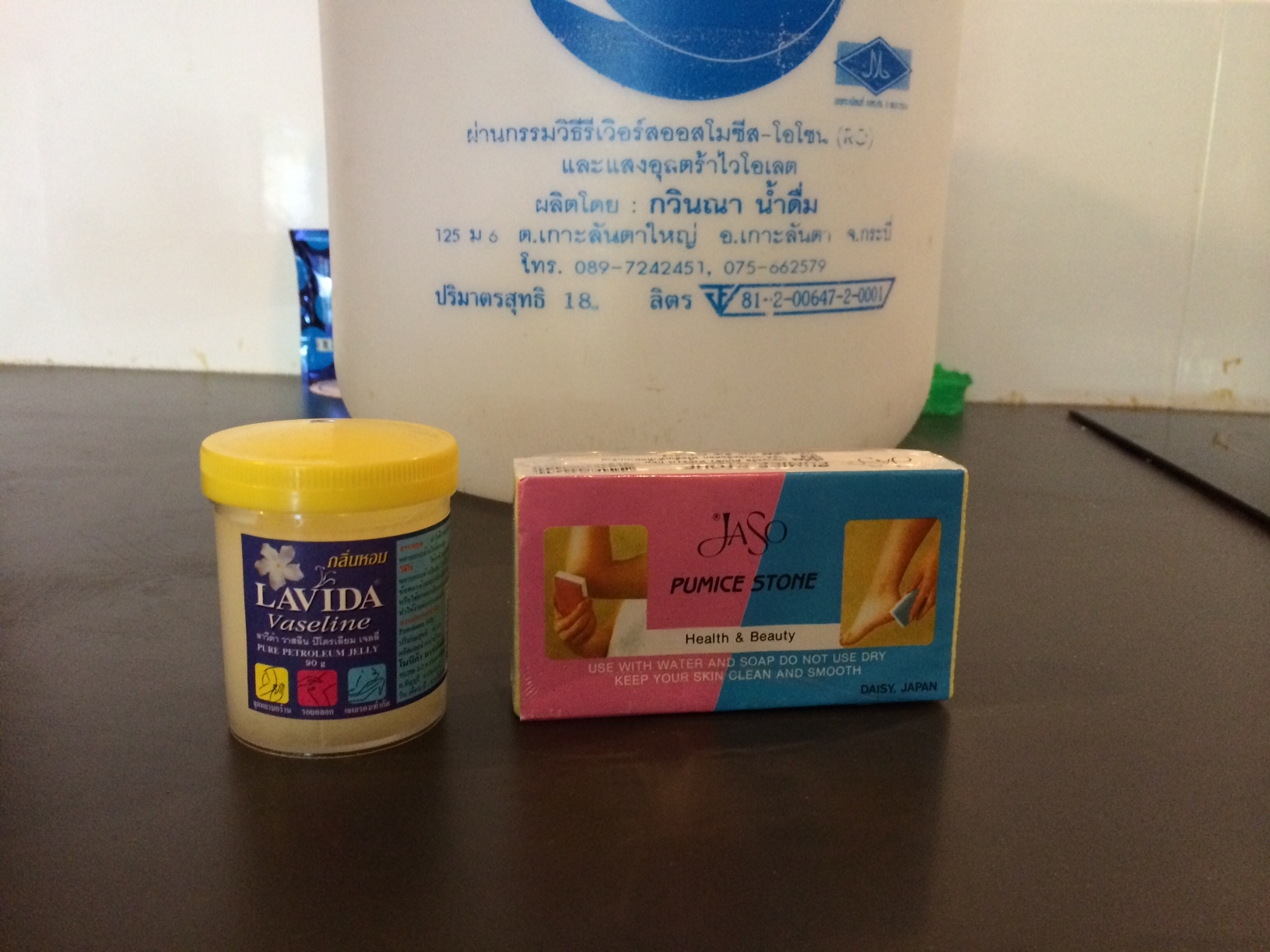 After about 15 minutes of staring, scrubbing, chatting, and pointing, the manager, who I later learned was married to a German and spoke pretty good English, explained that I had some real issues.  Hard skin here, soft there, neglect everywhere.  She finally said apologetically that they “couldn’t really help me”.  She offered some products to take home (a pumice stone and a small tub of vaseline) and gave me very specific directions about how to scrub and vaseline my feet every day.  She repeated the instructions about 3 times to make sure I didn’t screw it up.  She said that she wouldn’t charge me for any of this (except about $1.50 for the products) and invited me back in a few weeks after I’ve completed the triage.  I was offered a cup of tea and shown the door.