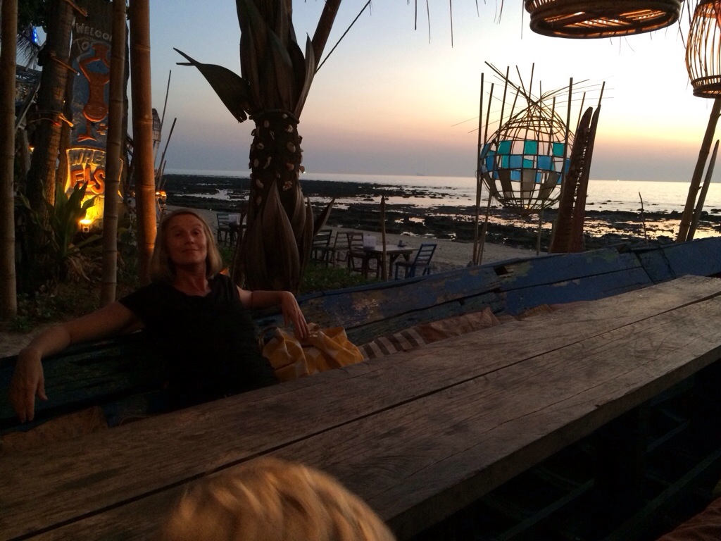 Anyway, my feet have always been rough and (in Karin’s words) horrible.  Now, after a few weeks of going mostly barefoot or in sandals, running, doing bare-foot boot camp on the beach, etc. my feet are extra crunchy, scratched, and have a couple of small punctures from rocks and coral.  So I went in for a foot scrub.  The manager gave me a warm smile and asked to see my feet.  “Oh.”  She assigned me to, I presume, a very competent staff member who had me lay down, feet up, and then began to apply some coconut oil mixed with something else.  All good.  After a while, she walked away, chatted with the manager, and walked back.  She continued to apply oil while peering closer at the landscape of one foot and then the other.  She seemed to be saying “Tsk, tsk” in Thai.
