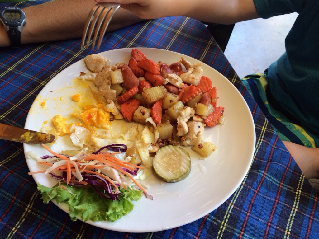 There’s a great dish that is served at Mae’s, a restaurant near our apartment and also served for lunch sometimes at Max’s preschool. It’s called pyttipanna and Max is a big fan.