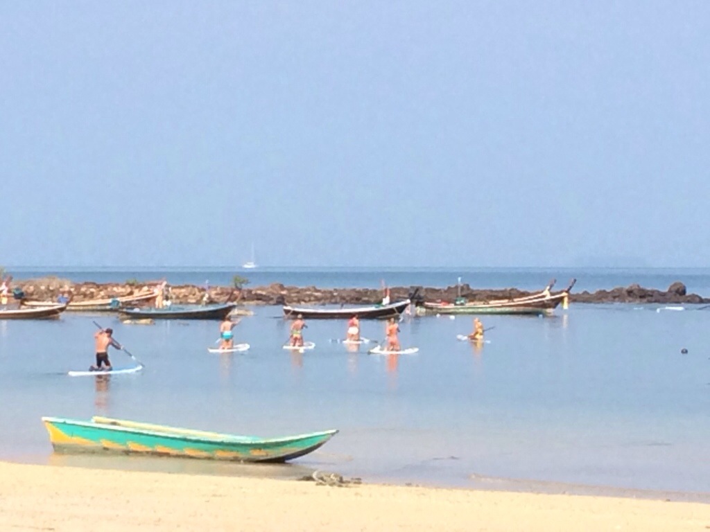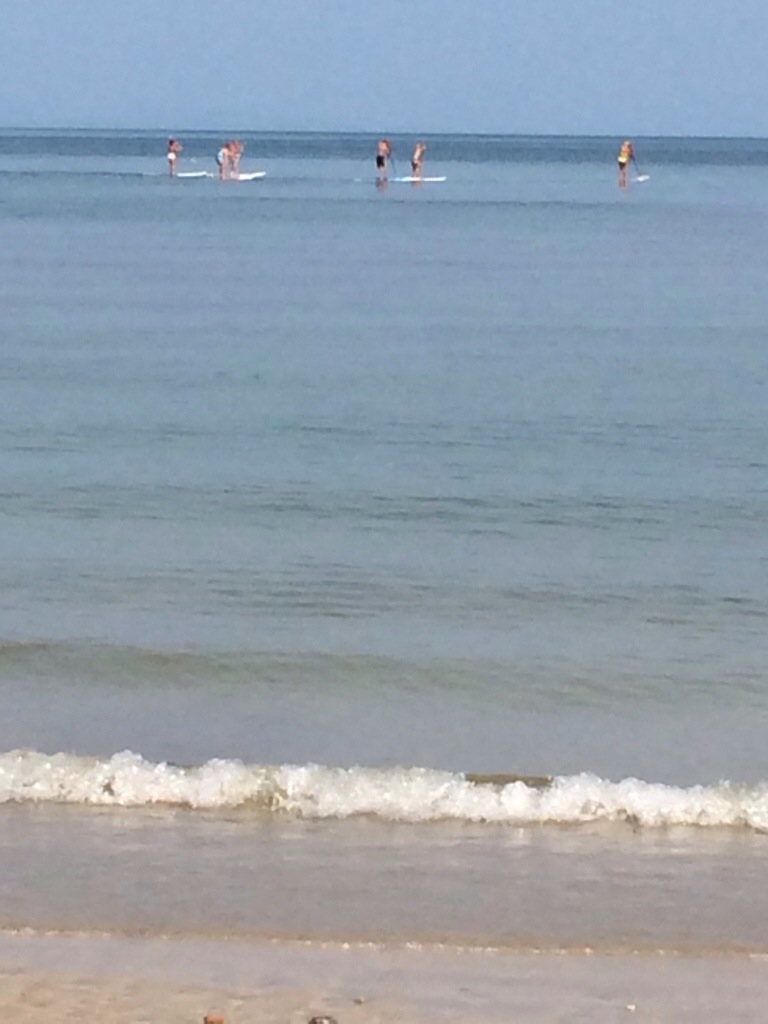 Karin is now a regular at yoga (taught by a very cool Okie transplant), Zumba (taught by a friend and sometimes babysitter for Max), Friskies o Svettis (a Swedish thing – circuit/dance/aerobics) on the beach, and Stand-up paddle board fitness class, which is like an exercise class on a drifting surf board. I’m in for the yoga, paddle board class, and another boot camp on the beach.